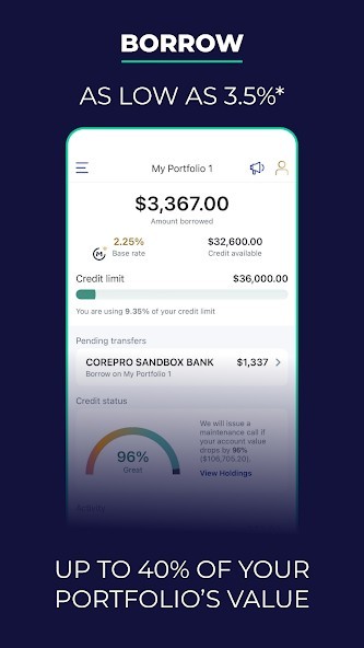 •Borrow up to 40% of your portfolio’s value