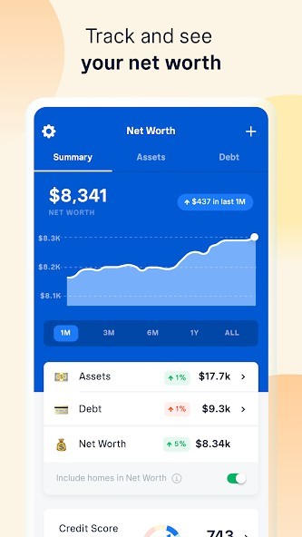 Use Truebill as a spending tracker to see where your money goes and how your net worth changes. Connect your investment and retirement accounts to view how your holdings have grown. You can also use Truebill to monitor your credit score and credit report and start thinking about your long-term financial goals. The app tracks all your bank, credit, and investment accounts so you don’t have to – just link them once and let the app handle the rest.